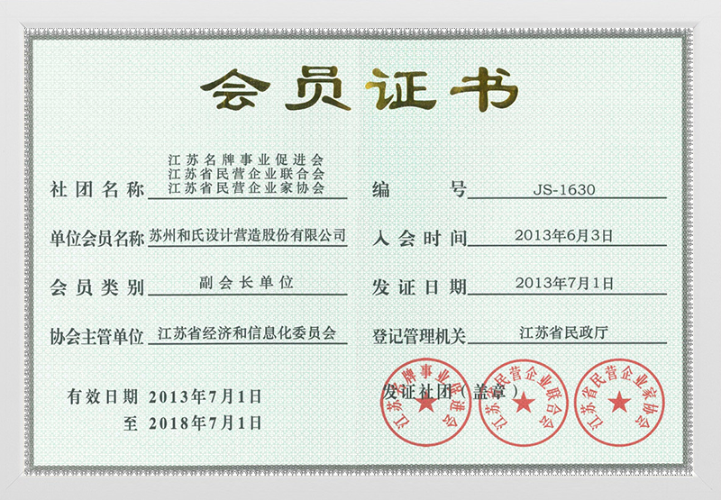 江蘇名牌事業(yè)促進(jìn)會(huì)、江蘇省民營企業(yè)聯(lián)合會(huì)、江蘇省民營企業(yè)家協(xié)會(huì)-會(huì)員證書-副會(huì)長單位
